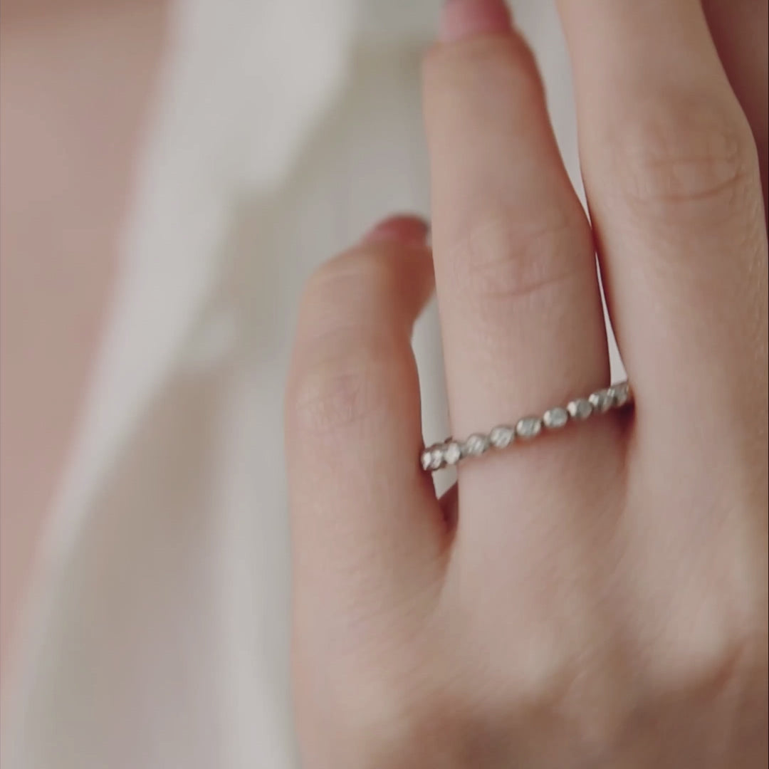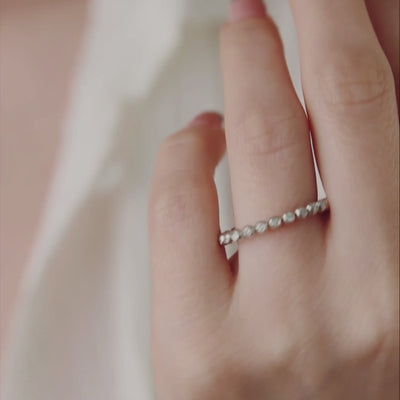 - Design Feature: 3/4 tour of bezel-set diamonds, ideal for stacking and versatile enough to be worn on any finger