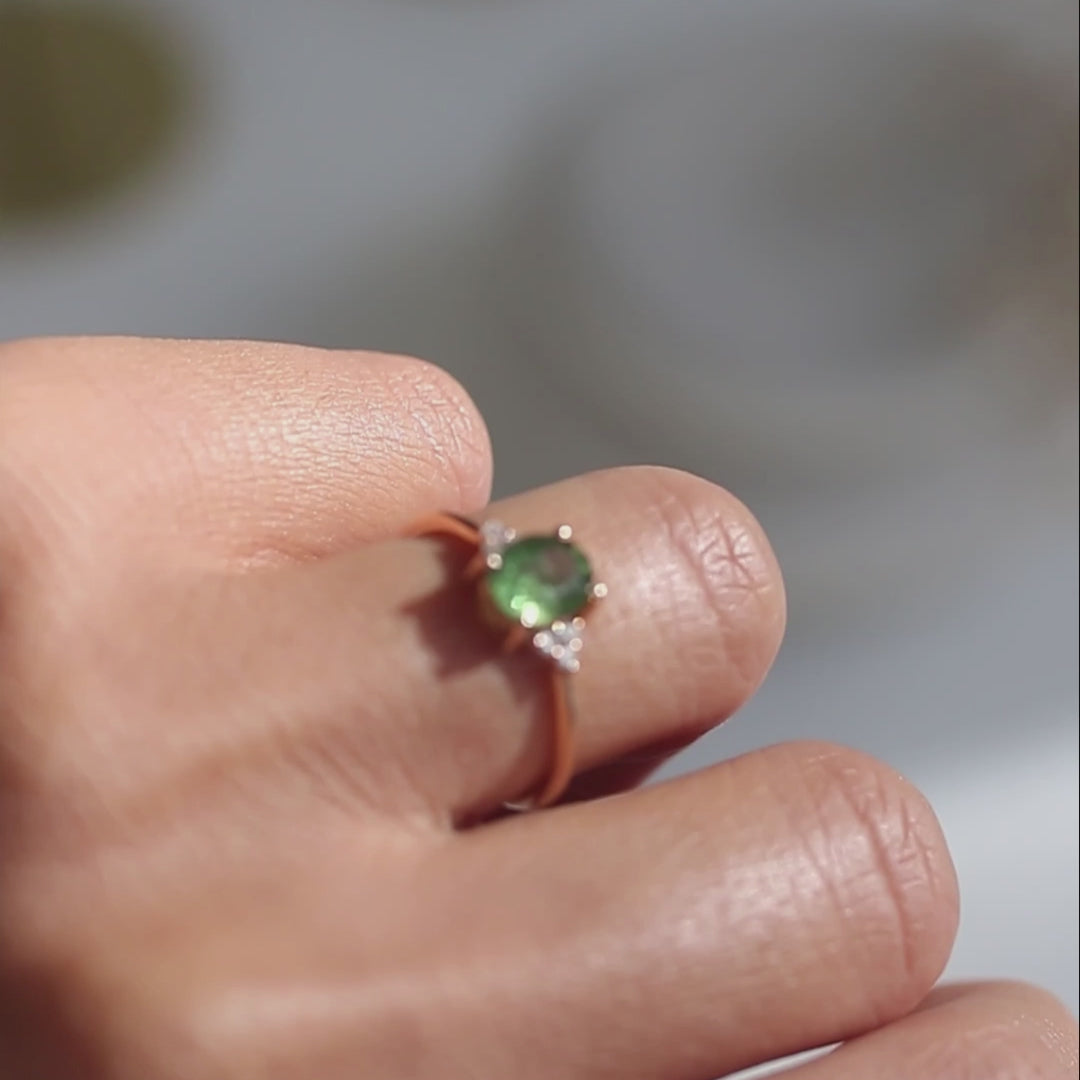 Oval Green Sapphire Engagement Ring With Diamond - Art Deco Style