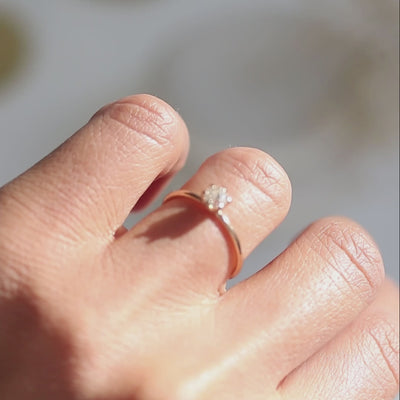 Discover the timeless elegance of this solitaire champagne diamond ring, featuring a stunning champagne diamond held securely in a classic six-prong setting. Crafted in 14-karat gold, this dainty engagement ring combines simplicity and sophistication.