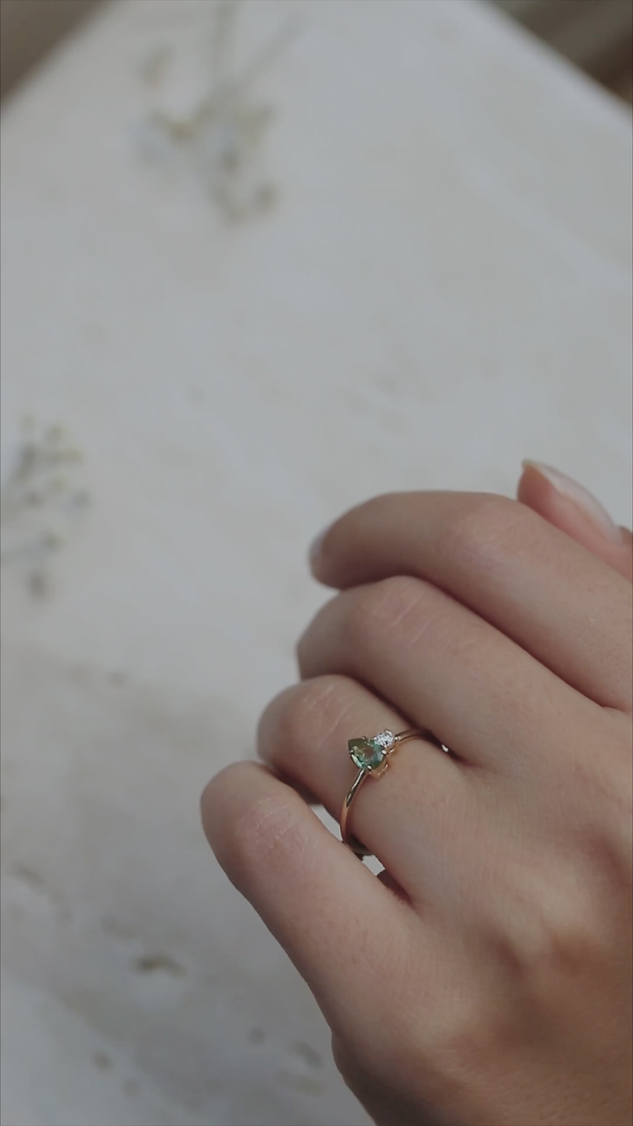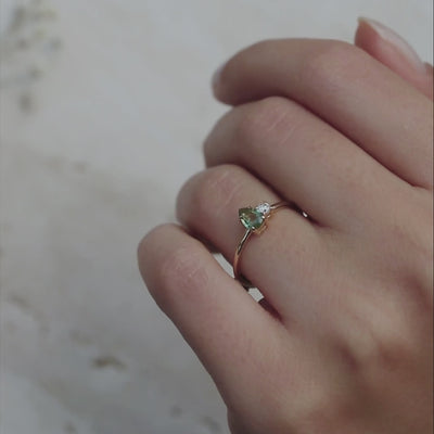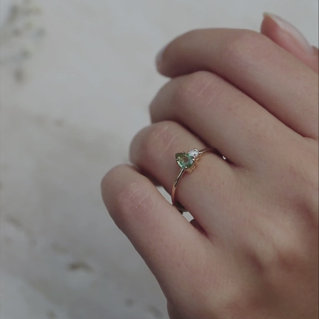 Green Sapphire & Diamond Engagement Ring – 14K Gold