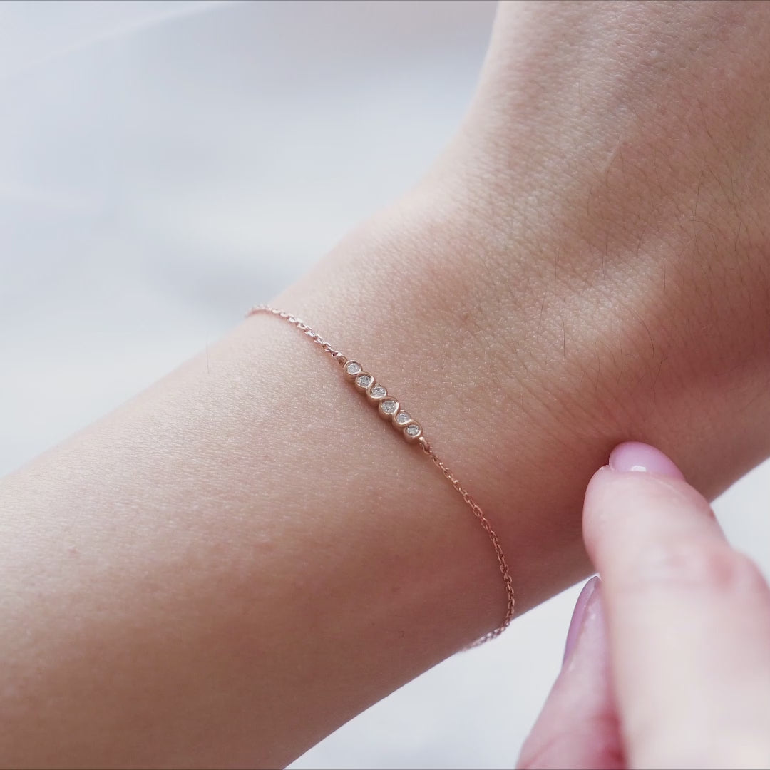 Indulge in understated elegance with our Bezel Diamond Bracelet. Featuring a delicate twist bezel setting, this stunning bracelet showcases 7 diamonds totaling approximately 0.08 ct. Each diamond is expertly placed to catch the eye and add a touch of luxury to any outfit. Elevate your style with this timeless piece.