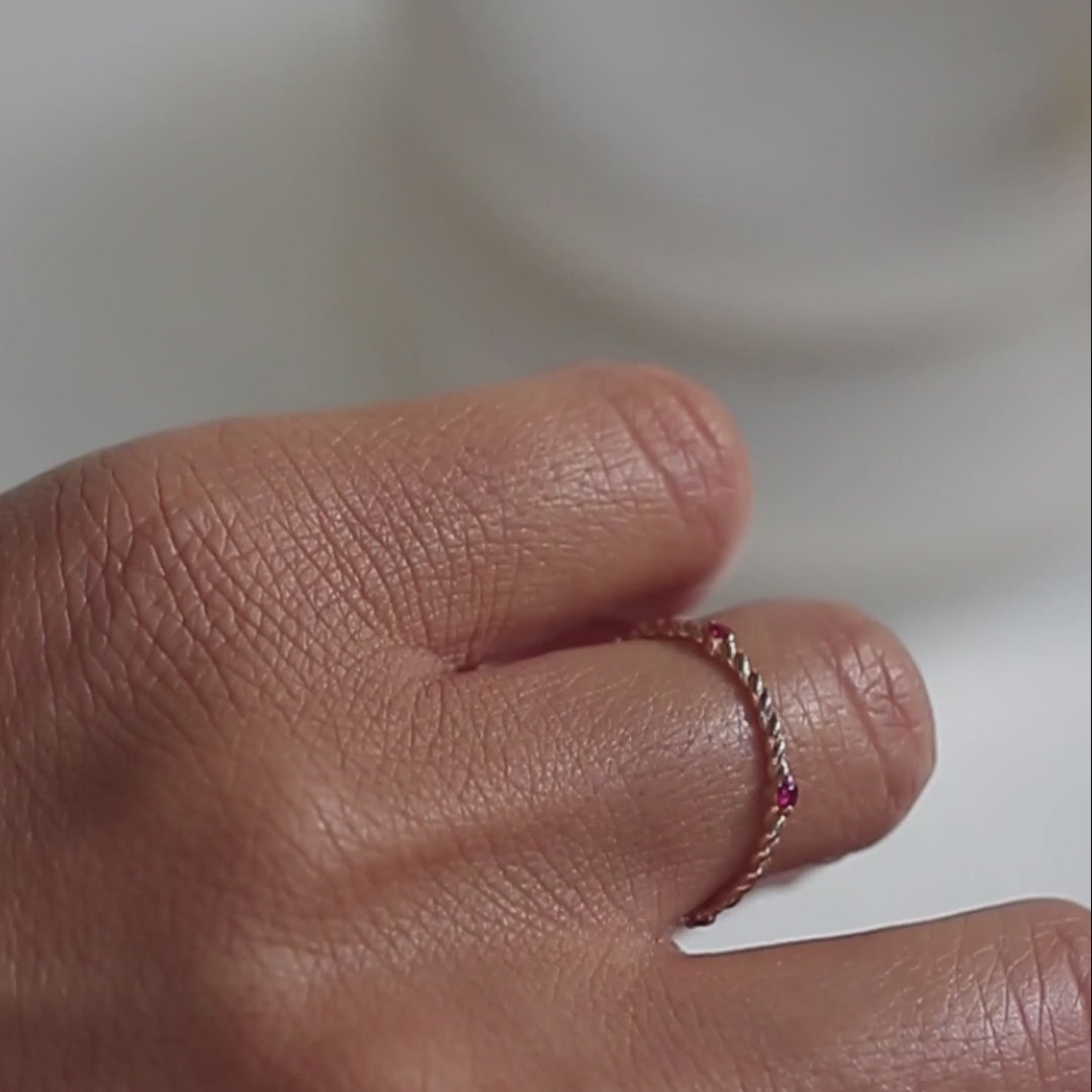 Twisted Band Wedding Ring with Ruby - Perfect for Stacking